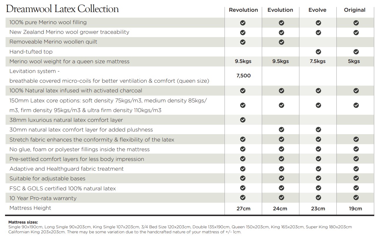 Investing in good sleep means investing in your health. Luxury latex mattresses offer strong support, absorbing every contour of the body and adjusting with you as you move about. Latex is famously extremely durable, withstanding the test of time and proving sturdy for over 10 years. Choose from our three incredible latex mattress options: Original, Evolution and Revolution. Here at Dreamwool, each luxury latex mattress is made using 100% natural latex that has been infused with activated charcoal. This keeps the latex layers cool, clean and breathable. Our mattresses are also comprised of 100% pure Merino wool filling, which is sourced sustainably from carefully selected South Island farms. We don’t use any glue, foam or polyester filling, so you can sleep easy knowing your mattress is made from top quality materials with none of the nasty stuff.
